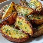 Crispy, golden potatoes infused with garlic and Parmesan cheese, made in an air fryer for a delicious guilt-free alternative.